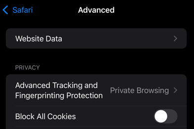Ensure Block All Cookies is turned OFF/deselected.