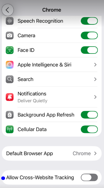 For iPhones (all browsers): Follow Safari phone and tablet instructions. Safari default browser settings will apply to all.